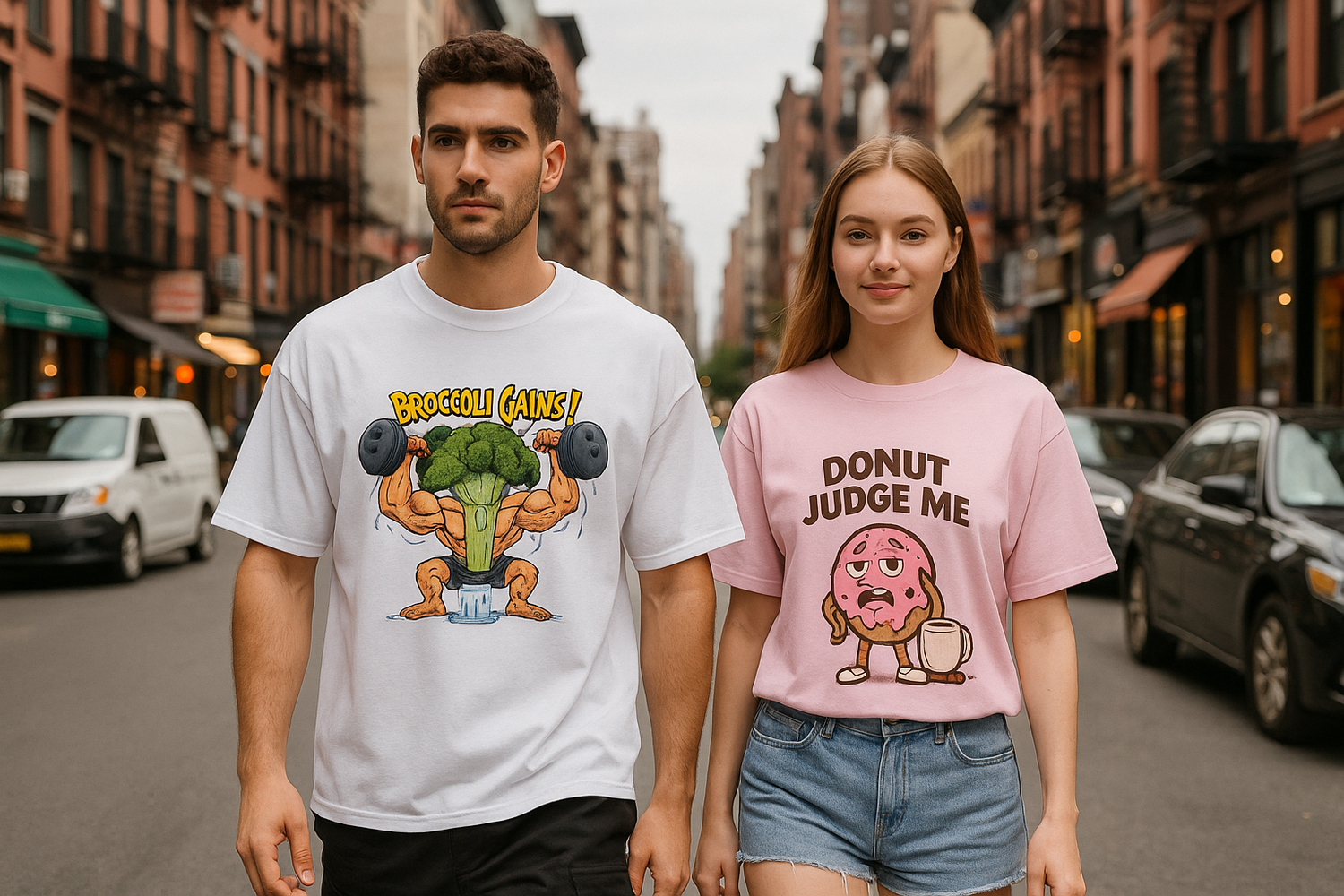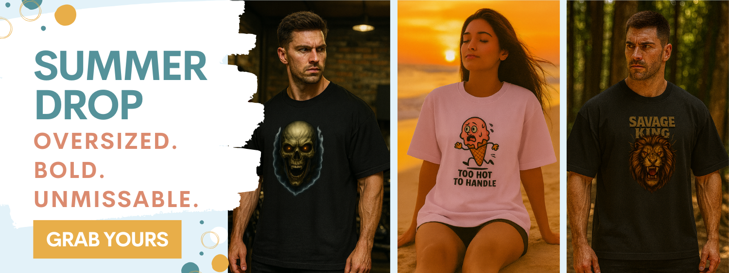 Explore bold food, gym & fun graphics on premium 180 GSM cotton tees — made for everyday comfort and standout style.